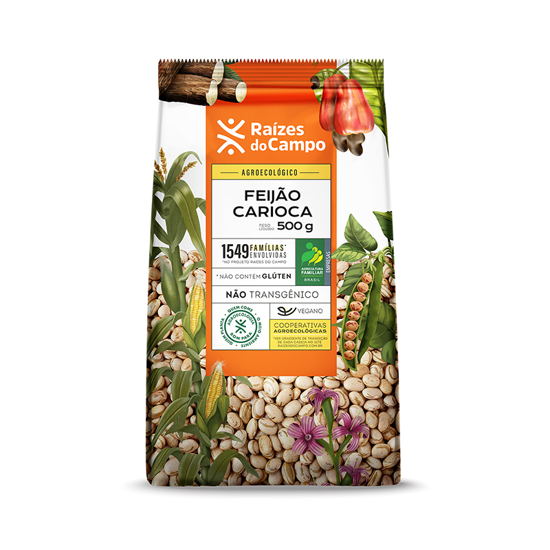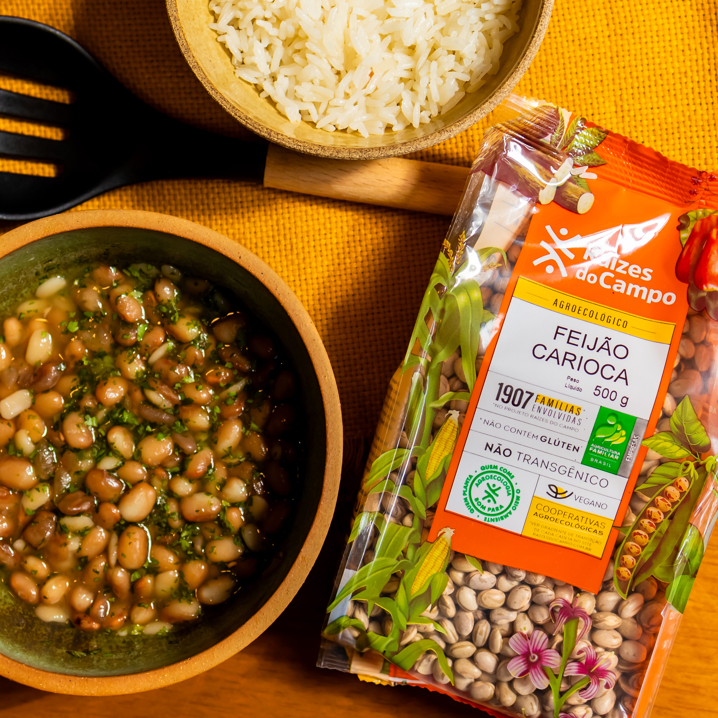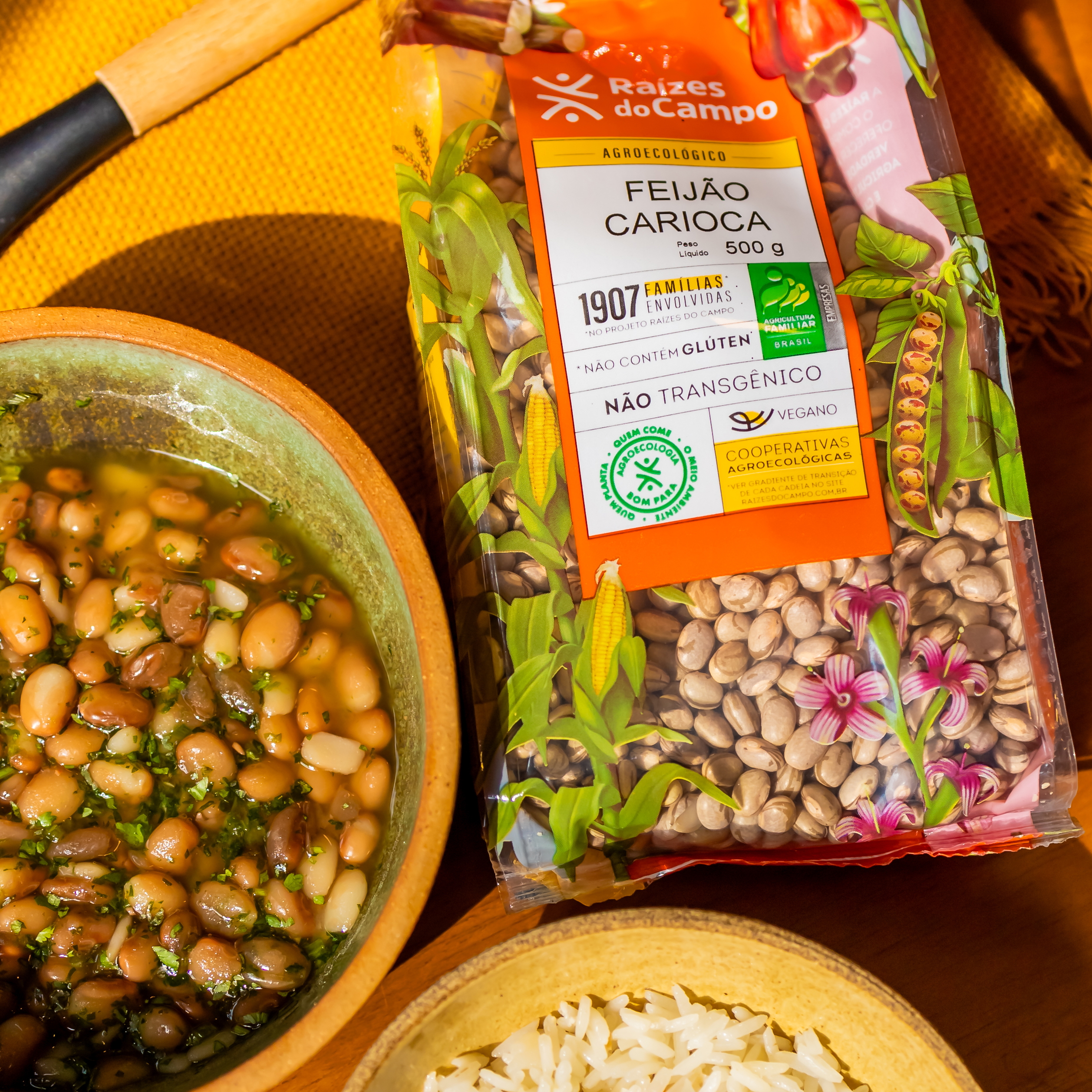 📦 Conteúdo: 14 pacote de Feijão Carioca Orgânico Raízes do Campo 500g